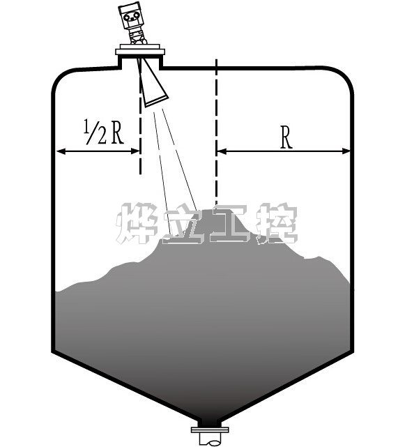 1 错误:不要将仪表安装于入料料流的上方,以保证测量的是介质表面而不是入料料流。