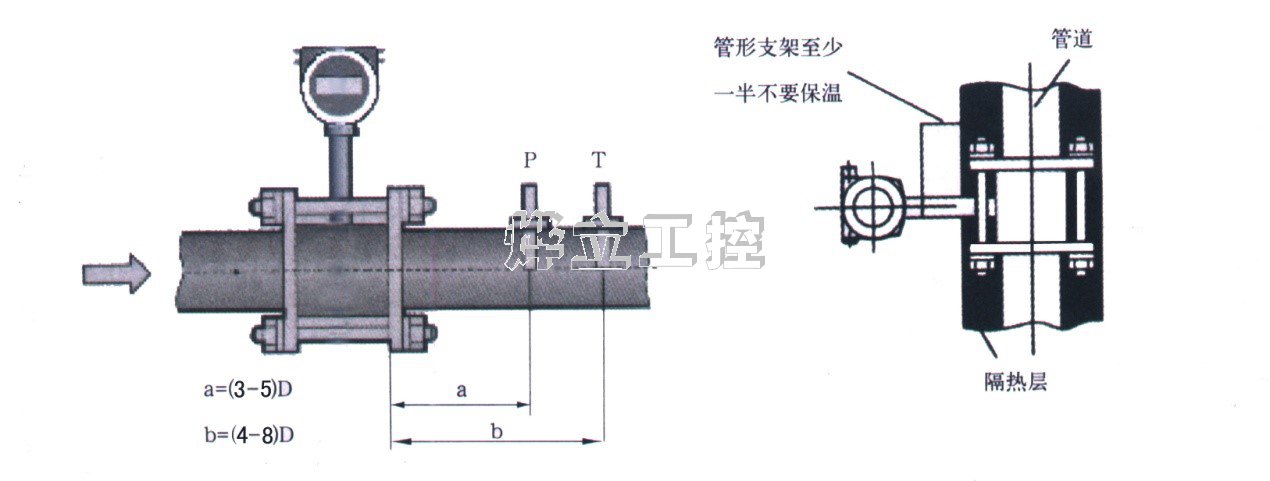 在满足流量计直管段要求的安装点上开一个Φ100的圆缺。